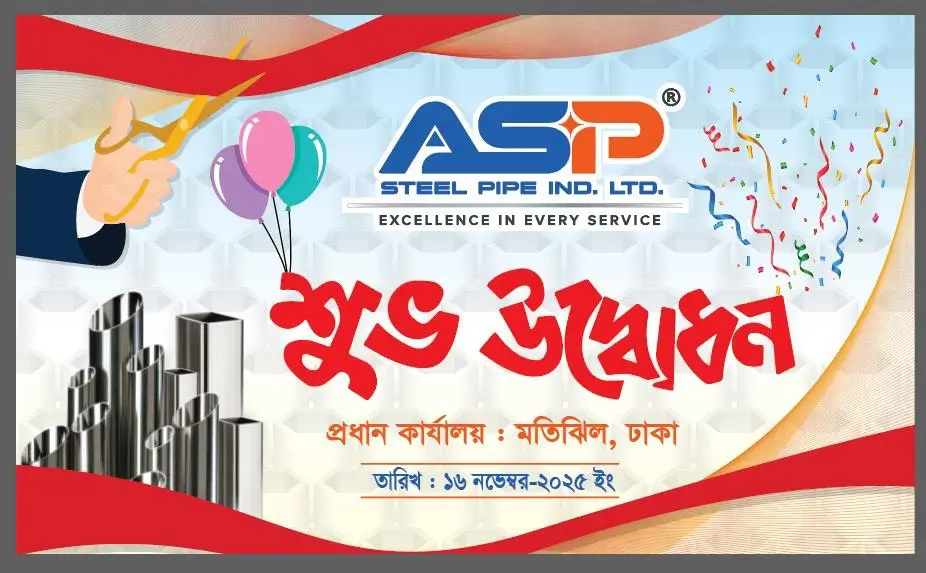 আমাদের পরিবারের আরেকটি মূল্যবান অর্জন যুক্ত হলো—ASP Steel Pipe Ind. Ltd.-এর নতুন প্রধান কার্যালয় এখন আনুষ্ঠানিকভাবে উদ্বোধন করা হয়েছে। সকলের
